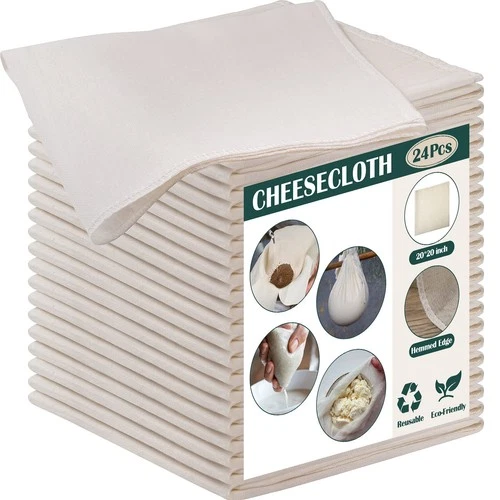 24 Pcs 20 x 20 Inches Cheese Cloths Bulk, 100, Hemmed Cheesecloth for Straini...