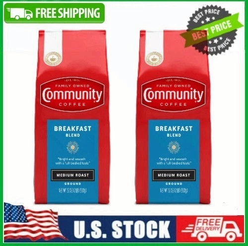 2 BAG Community Coffee Breakfast Blend Medium Roast Ground 32 oz Gable Top