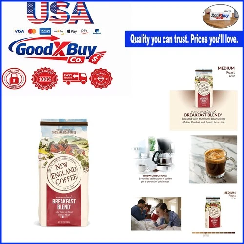 Breakfast Blend Medium Roast Ground Coffee 12oz Bag Arabica Kosher