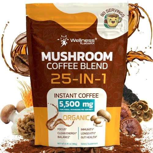 Mushroom Coffee Organic Instant Coffee, 25-in-1, Third-Party Tested Keto Frie...