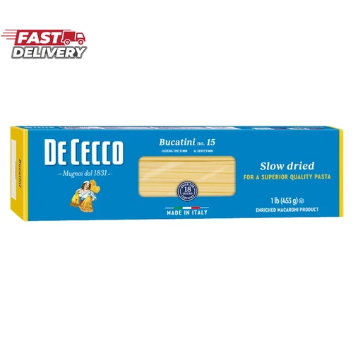 De Cecco Bucatini No. 15 Pasta, 16 Oz, Authentic, Slow Dried, Made with Semolina