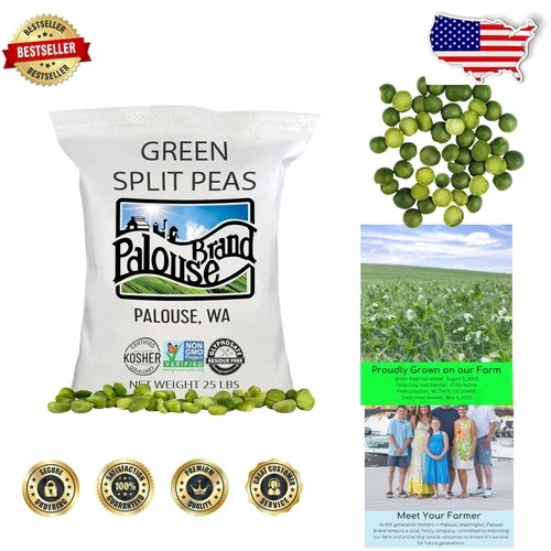 High Quality Split Peas 25 Lb - Glyphosate Free, Kosher, , Field Traced