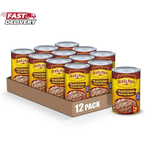 Old El Paso Traditional Canned Refried Beans, 1 Can, 16 Oz (Pack of 12)
