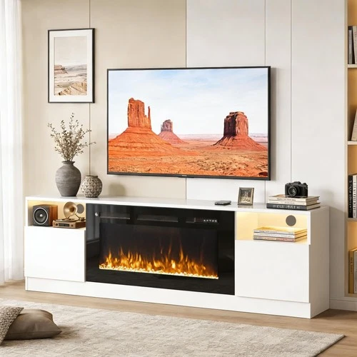 MXV 70" Fireplace TV Stand, Modern 70 Inch, White Tv Stand + Black