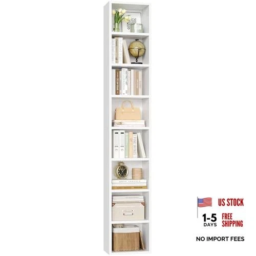 Bookshelf 8-Tier Media Tower Rack.6 X 9.3 X 70.9 Inches CD DVD Slim 1 White