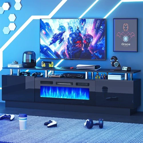 MXV 70" Fireplace TV Stand, Modern 70 Inch, Black Tv Stand +