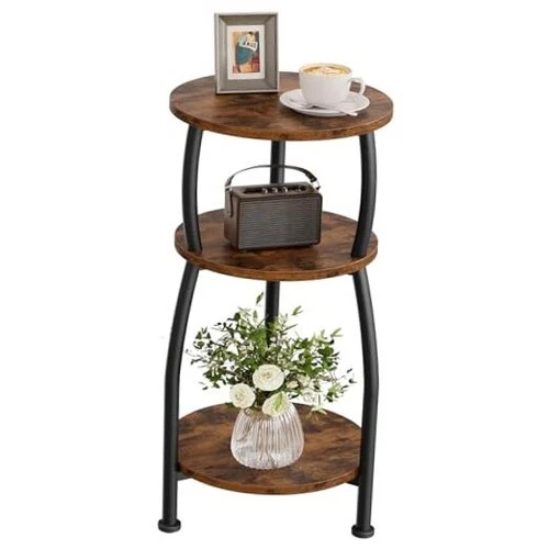 Small Round Side Table, 3-Tier End Table with Storage Rustic Brown Classic