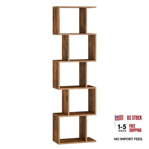 Bookshelf, 5-Tier Bookcase, 9.4 x 15.7 x 62.6 5-Tier (15.7"W) Rustic Brown
