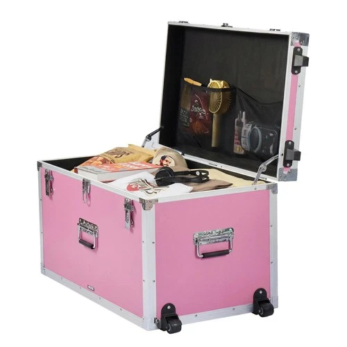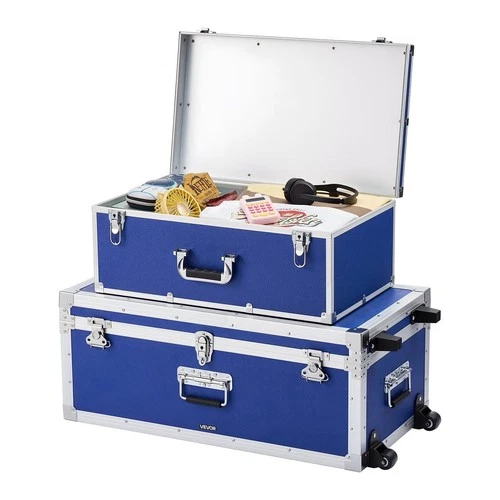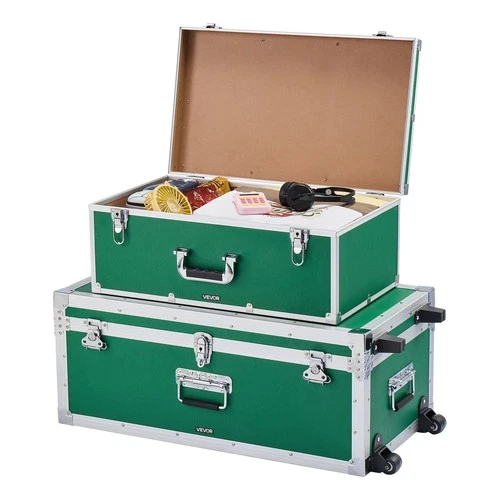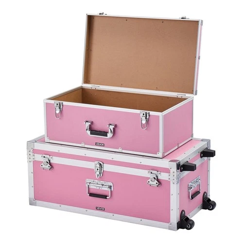 Metal Storage Trunk, Set of 2, Wooden Suitcase Storage Boxes with Padlocks,