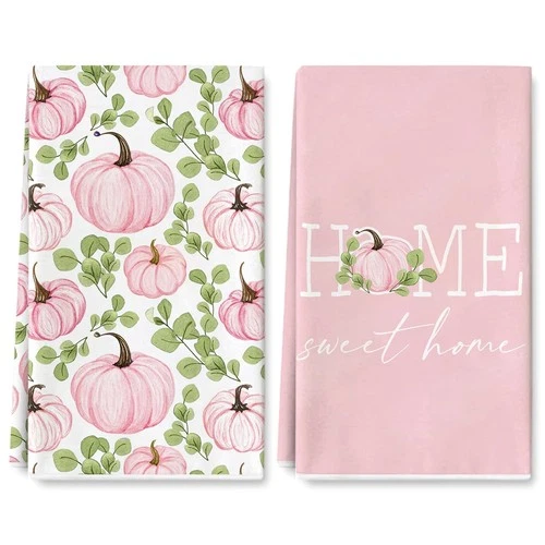 AnyDesign Pink Pumpkin Kitchen Dish Towel 18 x 28 Inch Sweet Home Fall Dishcl...