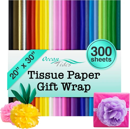 Premium Wrapping Paper – 300 Sheets (20 X 30 Inches) Colored Tissue Paper for Gi