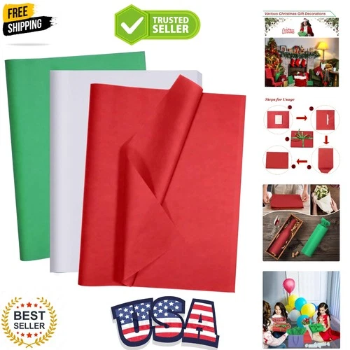 100 Sheets White Red Green Tissue Paper 14x20 Inches Multicolor Wrapping Pape...