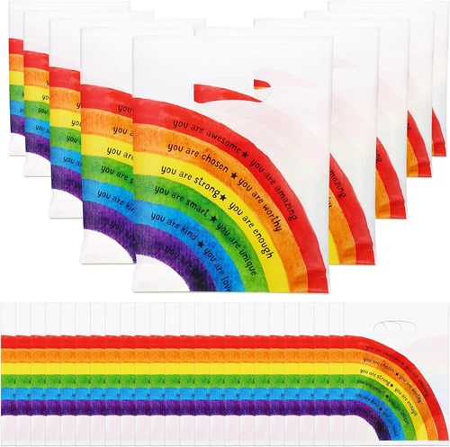 50 Rainbow Inspirational Quote Treat Bags Small Plastic Party Favor Gift Bags