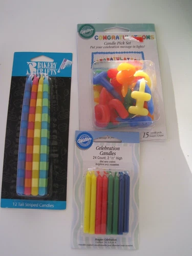 Striped Congratulations Celebration Birthday Candles Lot 3
