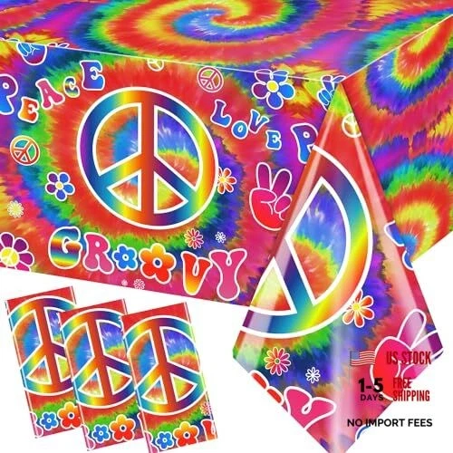 Tie Dye Birthday Party Supplies, 60's Hippie Theme Tablecloth 3Pcs Rainbow