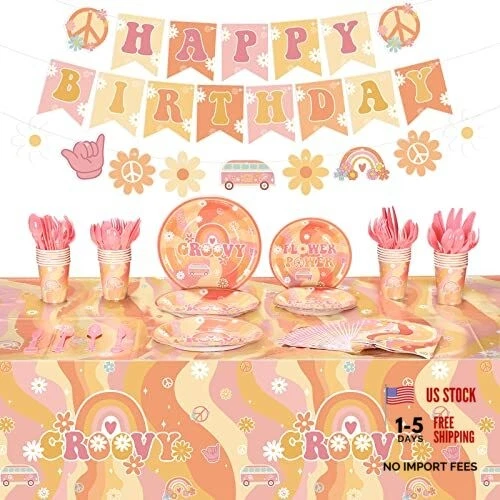 173 Pcs Groovy Party Supplies Serves 24, Include Boho Hippie Tablecloth