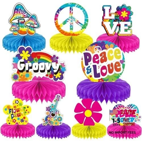 60's Hippie Party Honeycomb Centerpieces 70's Themed Party Supplies Table