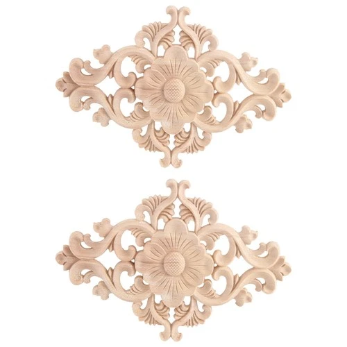 21*15cm Wood Unpainted Onlay Applique Furniture Home Decor, 2pcs M9Q52278