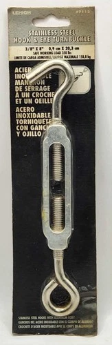 Lehigh # 7112 Stainless Steel Hook & Eye Turnbuckle 3/8" x 8" Work Load 350 lbs.