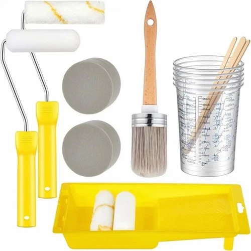 18-Piece Paint Brush and Roller Set for Cabinet Furniture with Sponge, Tray