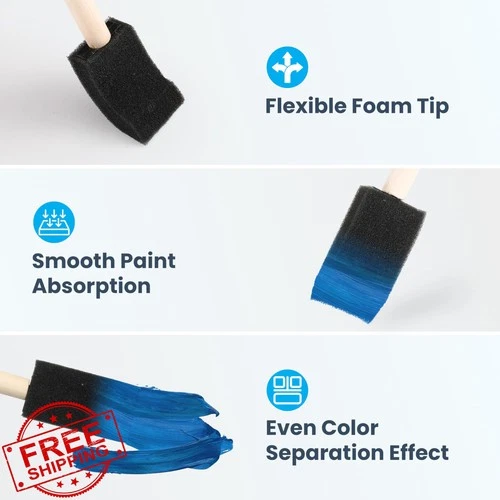 100 Pack 2 inch Foam Brush Sponge Wood Handle Paint for Acrylics, Stains,