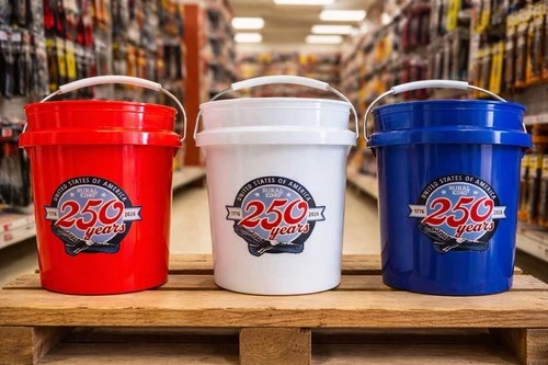 NEW Rural King Red White and Blue Mini Bucket Set