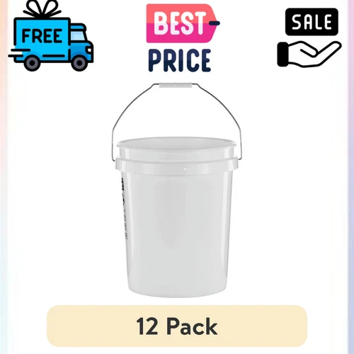 (12 Pack) United Solutions 5 Gallon Utility Bucket Plastic Pail Food Grade