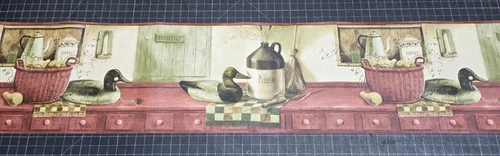 Country Wallpaper Border SP76451S Basket Duck Coffee Jug Candle Teapot