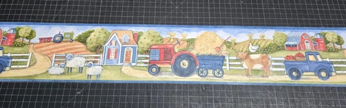 Country Farm Wallpaper Border SU75926 Tractor Sheep Cow Chicken Silo Tree