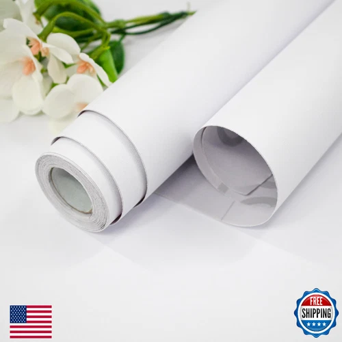 Nukofal White Contact Paper 15.7"x590" White Wallpaper Peel and Stick Matte Soli