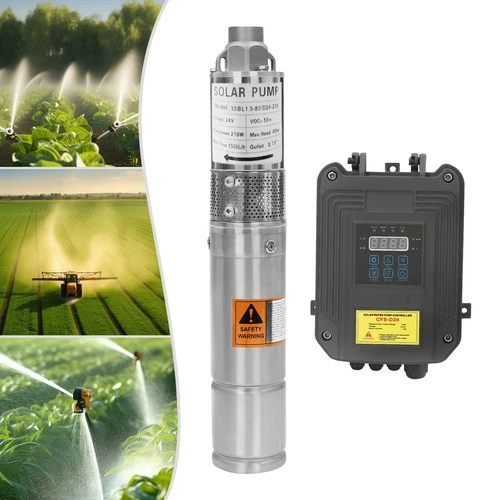 3" Stainless Steel Solar Submersible Deep Well Water Pump MPPT Controller 24V