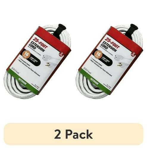 2 pack 25FT 16AWG 3 Prong White Single Outlet Outdoor Extension Cord