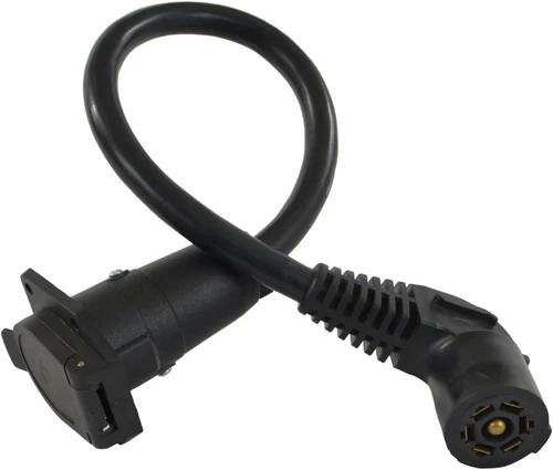 11110-024EX 7-Way Travel Trailer Extension Cord with Elbow Plug (2-Feet), Black