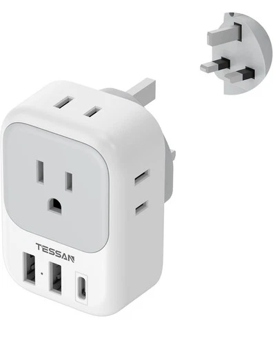 Power Plug Adapter with 4 Outlet 2/3 USB for US Travel to London British Ireland
