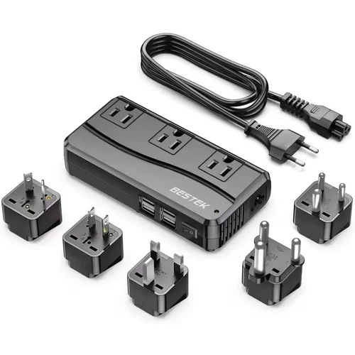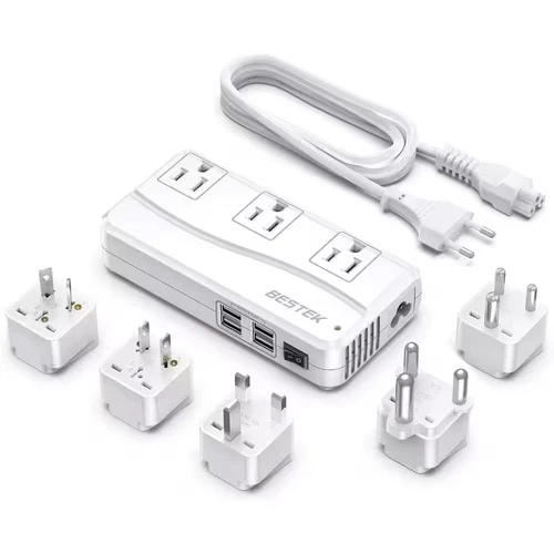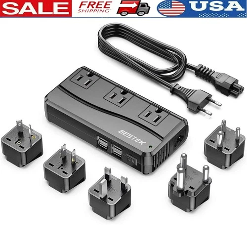 Travel Voltage Converter W/ 4 USB Charging Ports 3 AC Outlets Universal Adapter