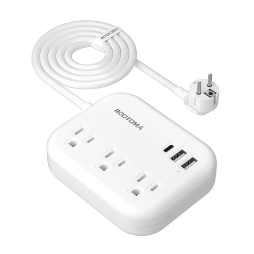 European Travel Plug Adapter with USB C, ROOTOMA Outlet 01-3 FT, White