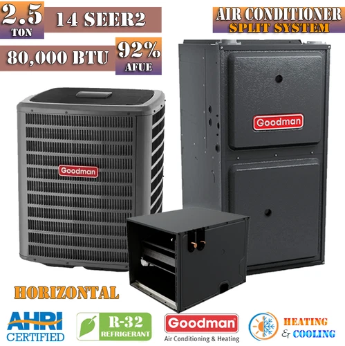 Goodman R32 2.5 Ton Air Conditioner & Gas Furnace Split System 14 SEER2 92% 80K
