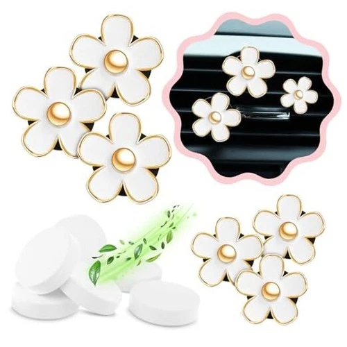 6 Pieces Daisy Car Decoration Flower Air Lavender, Eucalyptus, Jasmin White