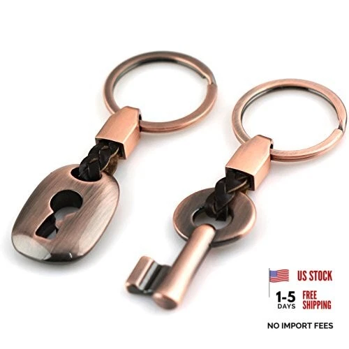 Creative Fashion Leather Couple Keychain Key Chain Ring Keyring Key Fob Copper
