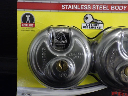 Padlock set of 2 Brinks Promax Security Can Key the same Stainless Steel NEW