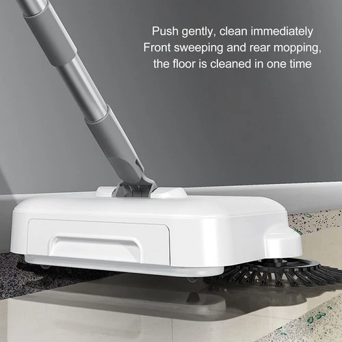 Hand Push Sweeper 2 in 1 Wet Dry Use 360 Degree Rotating Quiet Manual Sweeping