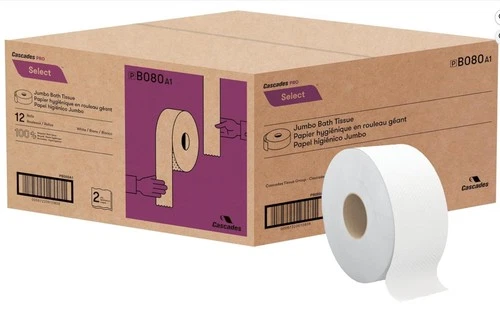 Cascades PRO B080 Select Jumbo Bath Tissue, Septic Safe,2-Ply,White,500',12Rolls