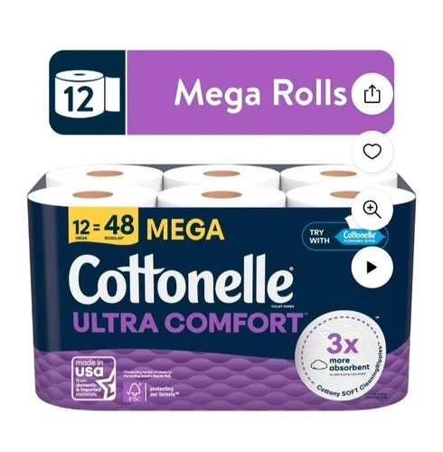 Cottonelle Toilet Paper 12 Mega Rolls Ultra Comfort Quilted 244 Sheets White