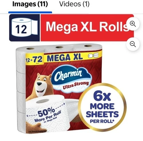 Charmin Toilet Paper 12 Mega XL Rolls Ultra Strong 6x More Sheets White