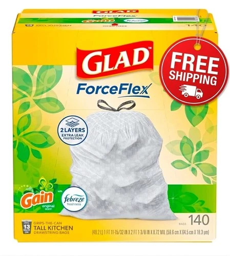 Glad ForceFlex 13 Gallon Tall Kitchen Drawstring Scented Trash Bags 140 Count