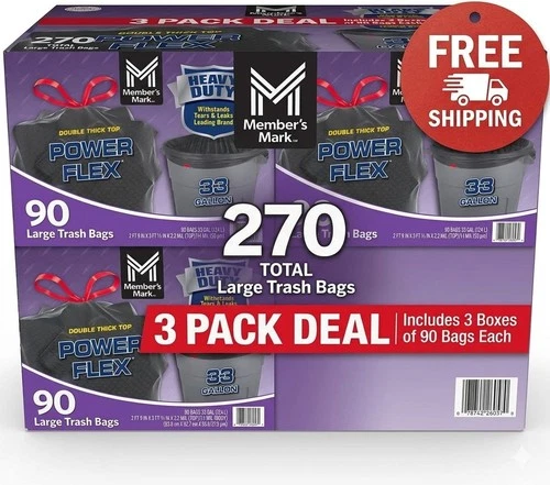 Member's Mark Power Flex Heavy Duty 33 Gallon Black Trash Bags 270 Count