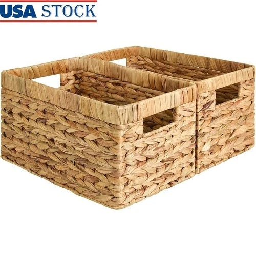 Handwoven Water Hyacinth Basket Multi-Purpose Storage W/ Handles Durable Design