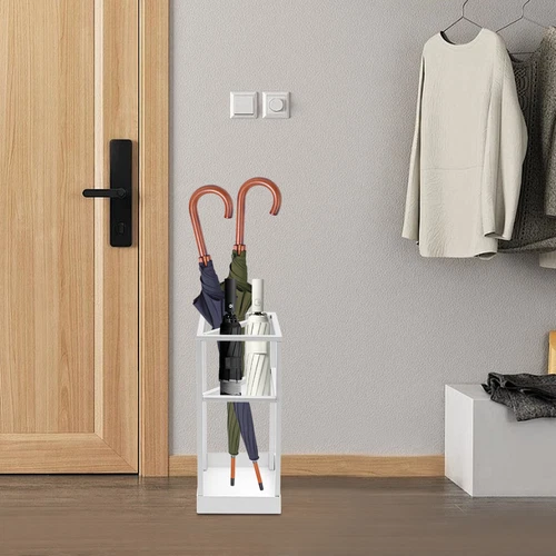 Metal Square Umbrella Rack Cane Holder Modern Entryway Umbrella Rack w/Drip Tray