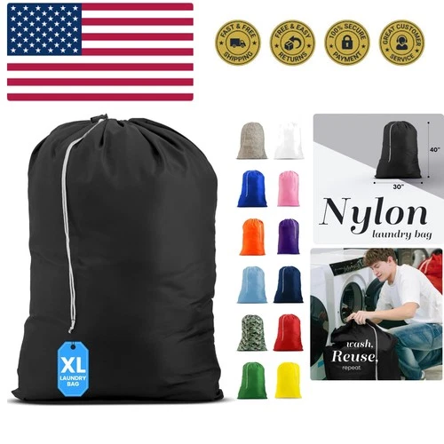 Nylon XL Laundry Bag, Large Capacity with Locking Drawstring, Machine Washabl...