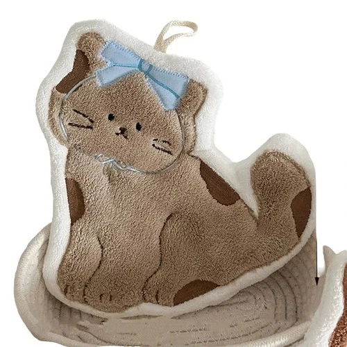 Pet Cat Super Absorbent Cute Cartoon Hand Towel Coral Fleece Kitchen Bath